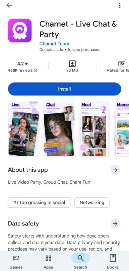 The second step is download Chamet Live on Play Store or App Store. To do this, you can simply search ‘Chamet Live’, and then install the app.