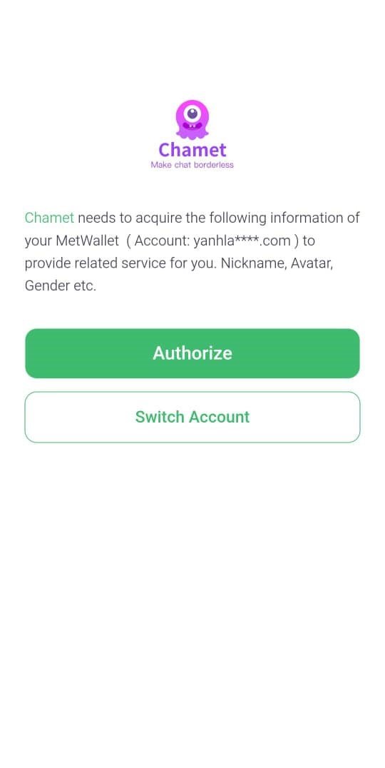 Once you’ve registered, you will be asked to authorize linking your MetWallet account to your Chamet Live account.